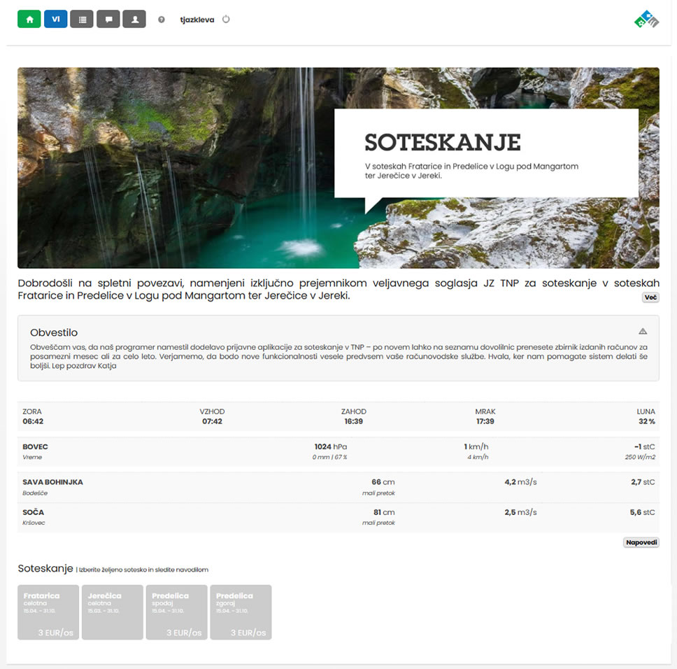 Spletno mesto gosoca.si Spletno mesto soteskanje.tnp.si Spletno mesto rd-ljubno.si/dovolilnica Spletno mesto buy.ribiska-druzina-bled.si/dovolilnica) Spletno mesto gosoca.si/portal Spletno plačilo stripe.com